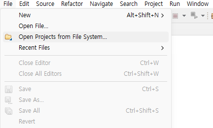 상단 메뉴에서 File > Open Projects from File System을 클릭합니다.