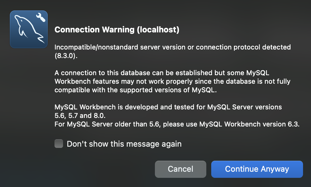 MySQL Workbench 데이터베이스 접속 시 튕김 현상