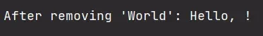 // "World"의 시작 위치부터 "World" 길이만큼 삭제