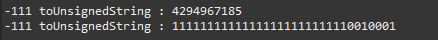 System.out.println("-111 toUnsignedString : " + Integer.toUnsignedString(int2));