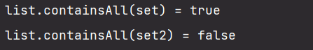 System.out.println("list.containsAll(set2) = " + list.containsAll(set2));