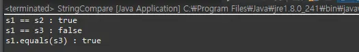System.out.println("s1.equals(s3) : " + s1.equals(s3)); //true