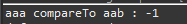System.out.println("aaa compareTo aab : " + s1.compareTo(s2));