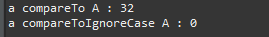 System.out.println("a compareTo A : " + "a".compareTo("A"));