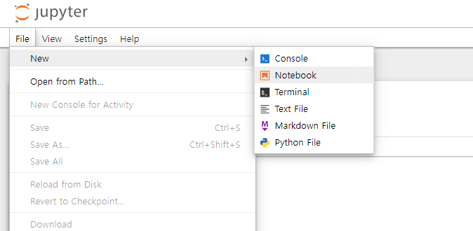 맨 하단에 Python File로 생성해도 되지만, Notebook으로 생성하겠습니다.