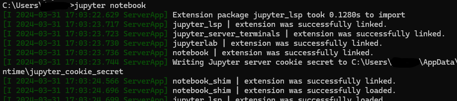 이 명령어를 실행하면 Jupyter Notebook과 관련된 모든 종속성이 설치됩니다.